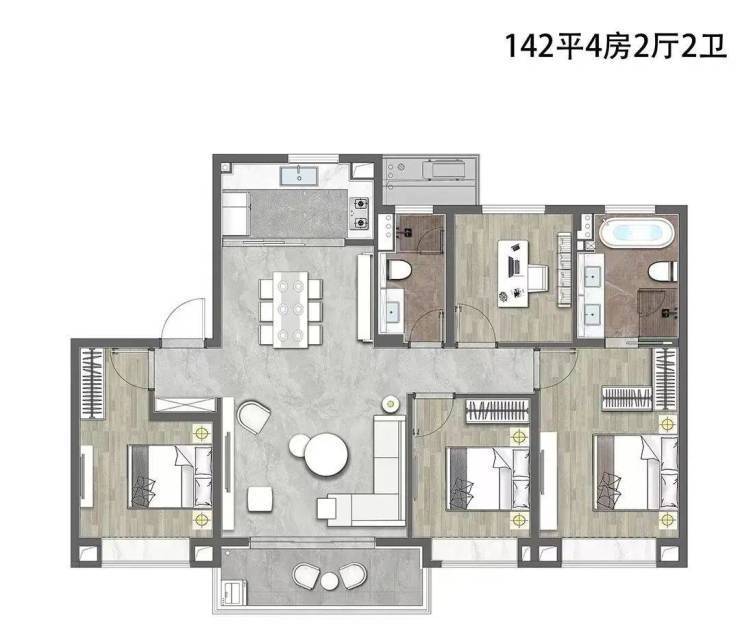 四开间朝南+南北通透+主卧套房设计+南向卧室带飘窗,可谓是一步到位的舒适型大4房。