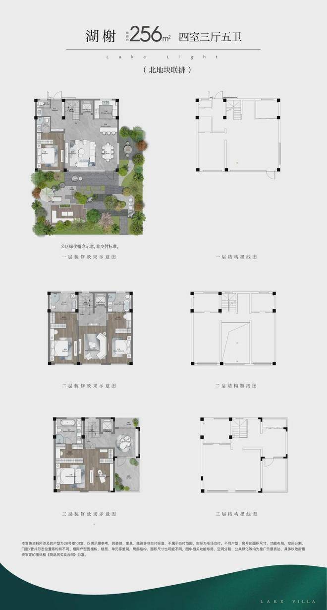 (1)联排:打造约246m²、约256m²(边户)、约280m²三个户型面积,以迭代的联排作品,致敬真别墅的回归