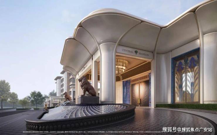 「玉兰门庭」摩登飘逸,环抱式落客前场,大师定制非遗掐丝珐琅门钹,流转温润光华,敬呈归家尊崇礼序,自此启幕生活的华贵序章。