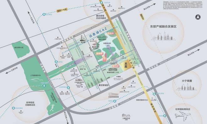 项目位于远香湖CAZ核心,远香湖CAZ位于嘉定新城的核心区域,是嘉定新城的综合功能中心、城市形象的集中展现区,规划为国际住区、大型商业集群、摩天地标集群、科创科研企业集群、国际教育文化等功能集聚复合区。