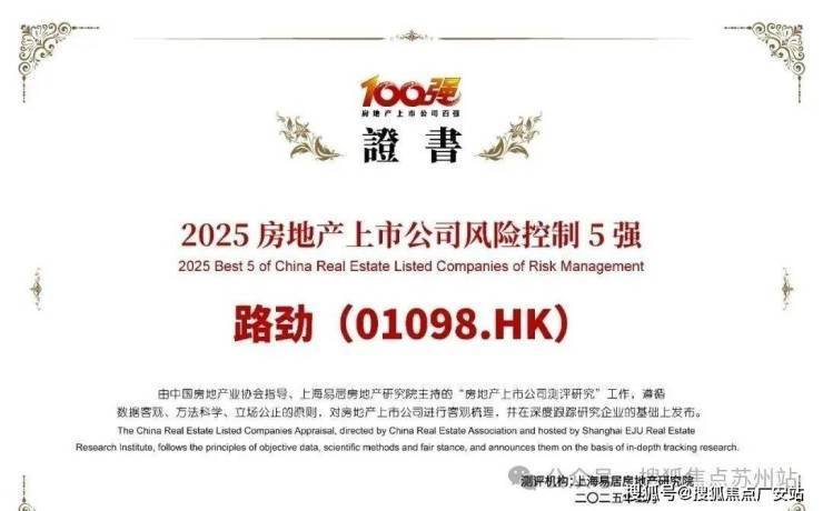 5月22日,2025房地产上市公司测评榜单正式发布,路劲位列综合实力第35名;而在风险控制单项排名中,更是连续四年位列第2名,凭借可持续发展能力与风控能力,赢得行业认可。
