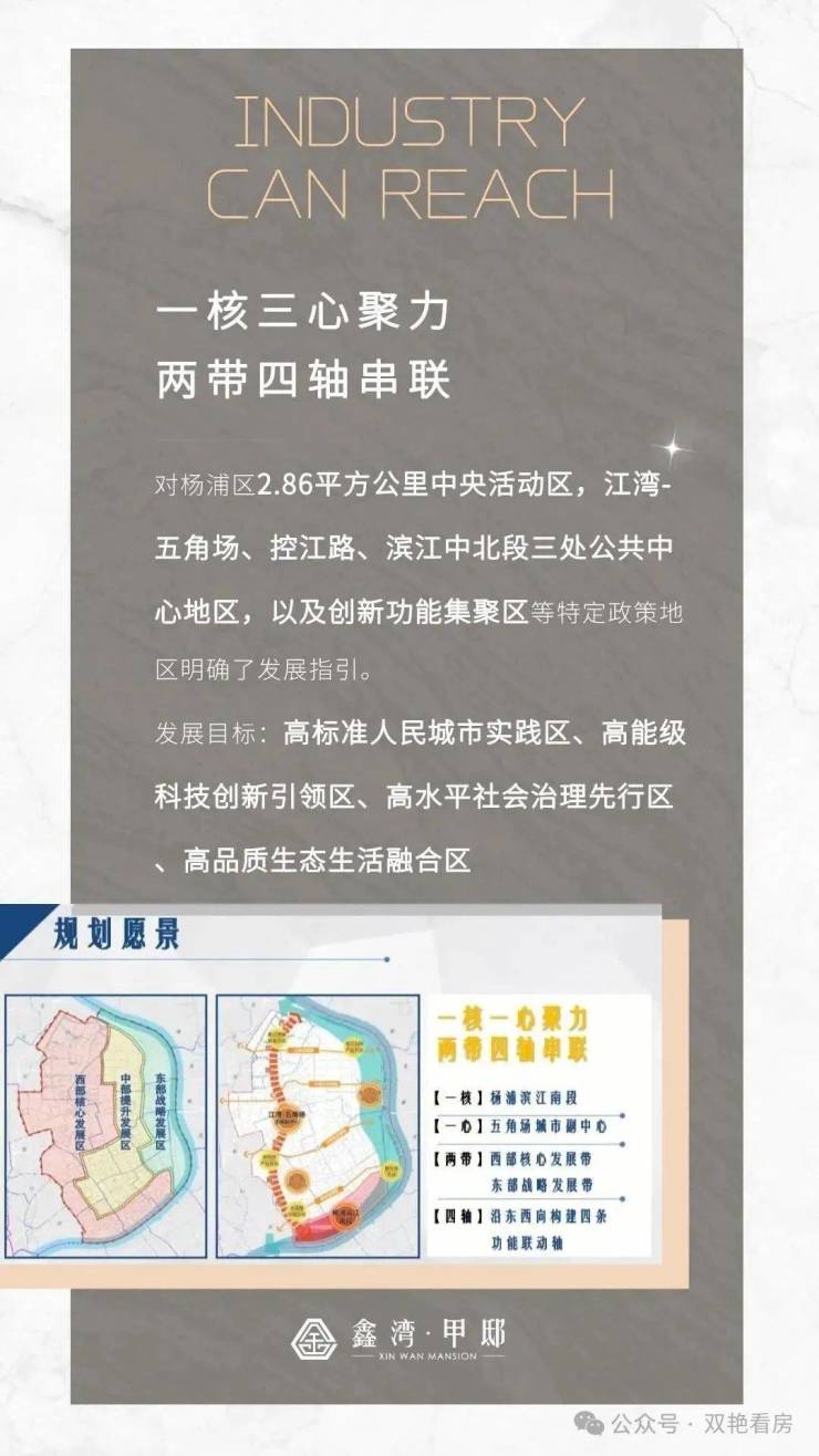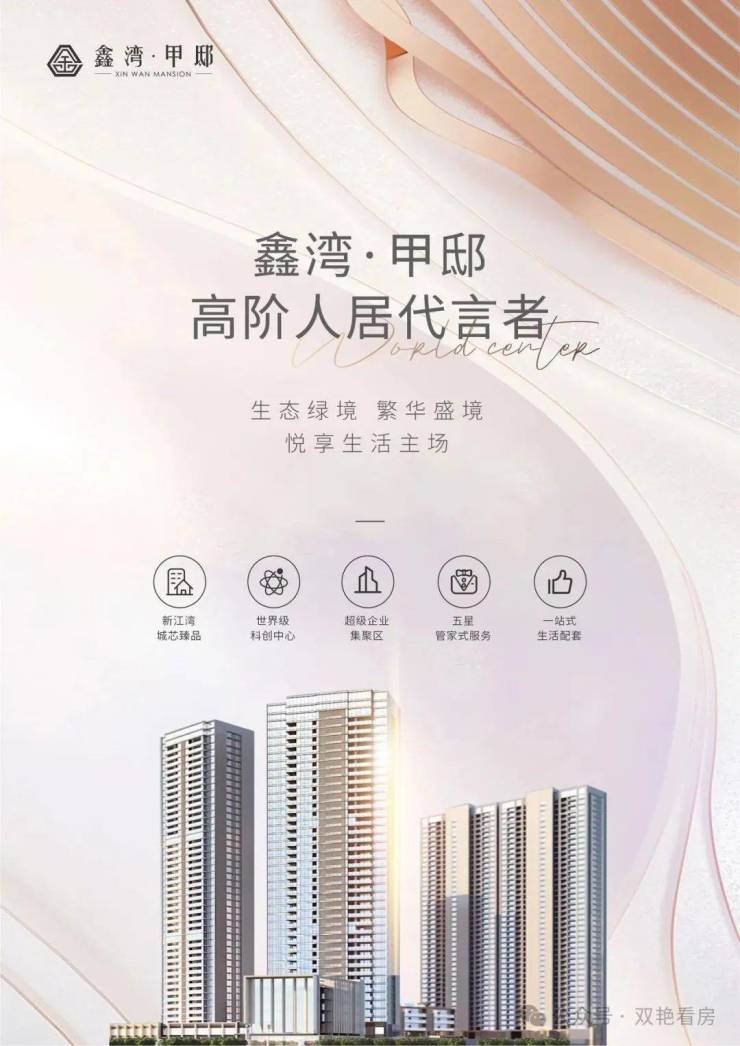 鑫湾甲邸位于第三代国际社区的标杆区域——新江湾城核心位置,是一座涵盖高端豪宅项目嘉誉湾、26万㎡顶级综合集中性商业配套、生态甲级写字楼、五星级凯悦国际酒店及酒店式公寓、一线星级影院的43万㎡高端城市旗舰综合体。作为新江湾城核心区内唯一的旗舰商业,项目汇聚HYATT PLACE、生态甲级写字楼、高端商业、星级院线、私人会所、露天泳池……打造全球鼎级社交平台,仅供千户奢享。