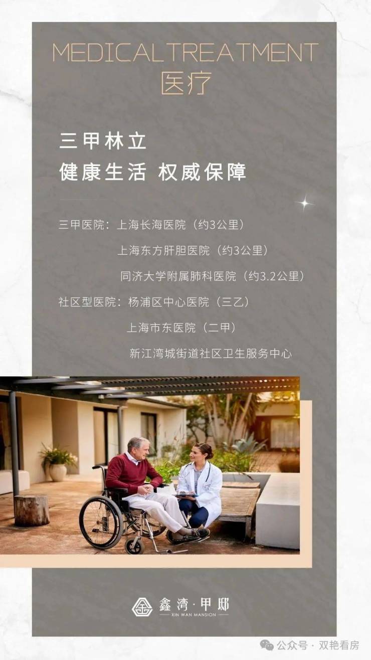 医疗配套,三甲医院上海长海医院 (约3公里),上海东方肝胆医院(约3公里),同济大学附属肺科医院(约3.2公里),社区型医院杨浦区中心医院 (三乙),上海市东医院(二甲),新江湾城街道社区卫生服务中心。