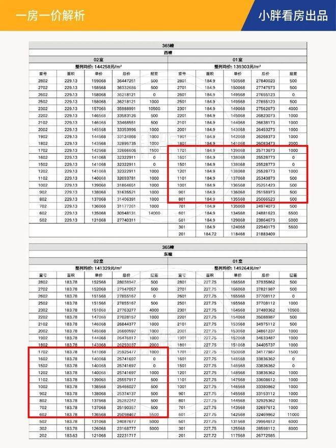 注意看价格表,2500万是项目建面约185㎡的主力价格段,买的都是中间楼层,并非低区。228㎡户型最贵3794万,4千万以内的预算真的是随便选!