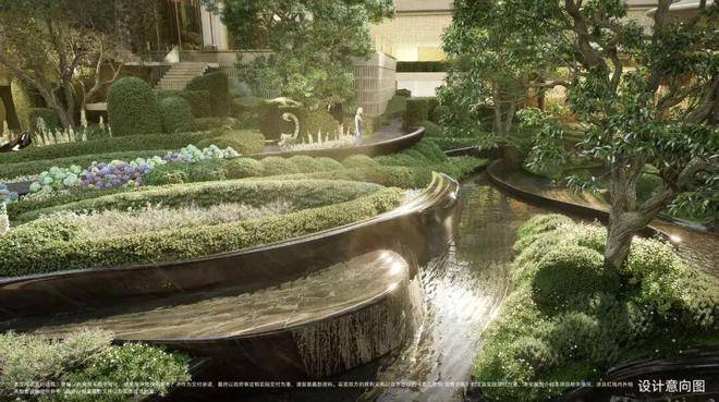 三层归家动线:从地面景观层到架空层,再到入户层,穿越绿植、光影与水景,步步进入私域。