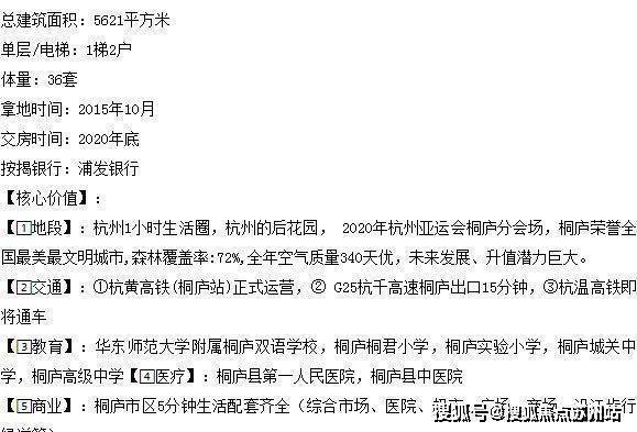 总高:8层(1-2车库 3-8住宅)物业:桐庐民安物业
