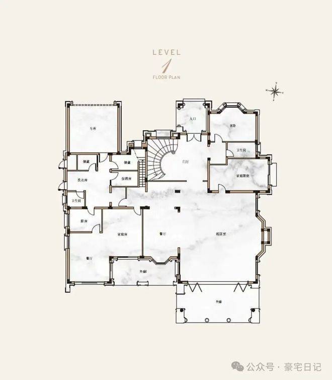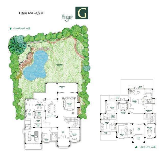 户型:纯独栋别墅,地上2层(无地下室),建面700-850㎡,7室5厅6卫,层高4.2米,带270°观景露台。36