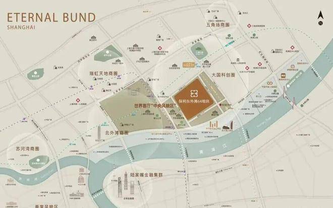 2025年6月上海5批次土拍中,6大国央企经过95轮激烈竞价,最终由保利发展以总价35亿元、楼板价95530元/㎡摘得杨浦东外滩64街坊地块(01C5-02地块)。