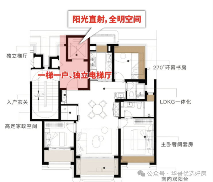 约114㎡户型:赠送面积近约18㎡(含独立电梯厅),比肩约140㎡产品的实得率!