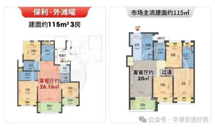 115-130㎡三房(主力户型,南向三开间,全景阳台)。