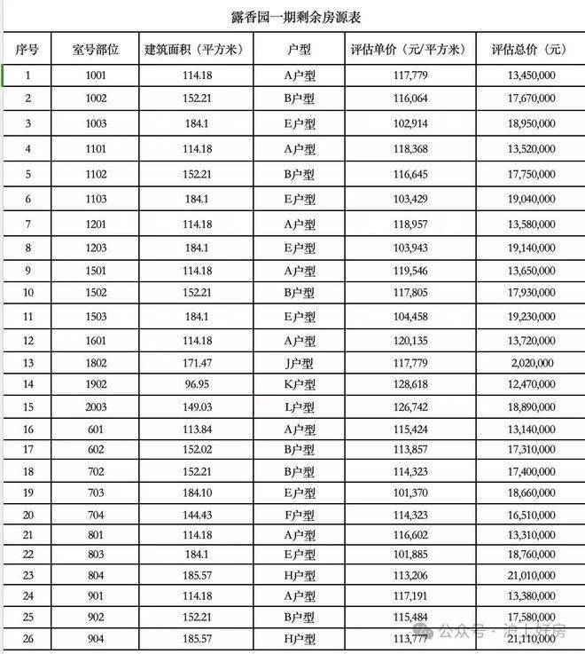 馥公馆一房一价表如下