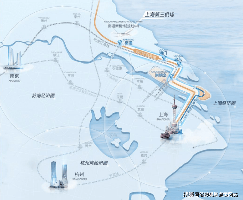 随着崇明线、北沿江高铁、上海第三机场(南通)落地,处于机场群中轴的崇明,展现出巨大的发展前景