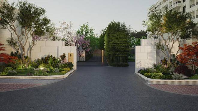 宽境社区大门、四季景观,酒店式入户大堂/地库大堂、艺术星空顶车库入口...该有的仪式感一个都不落。