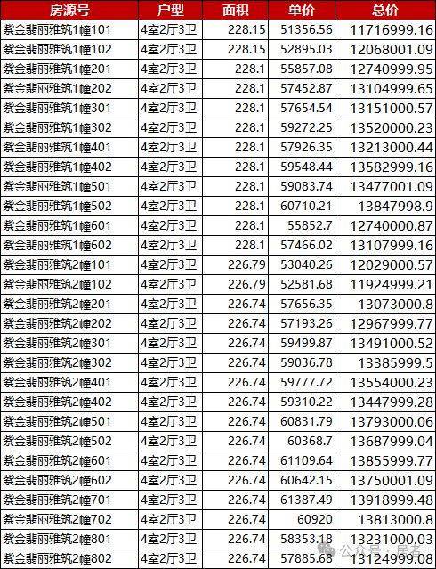 一房一价表如下所示↓