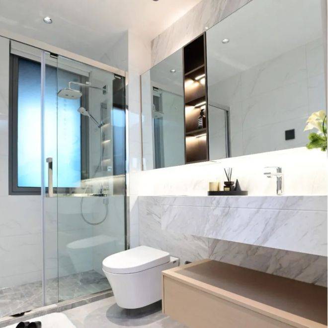 主卧套房设计,预留了衣帽间的位置和干湿分区的主卫,业主不仅拥有独立的私密空间,与老人同住,也不会出现抢占卫生间的尴尬局面,生活更加方便。