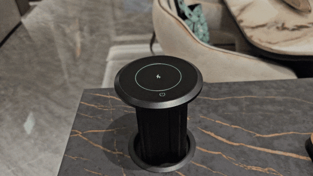 甚至还在台面上配置了可升降、可无线充电的插座,都在交付范围之内!