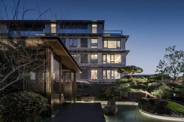 以苏州园林的叠山掇石为灵感,引入真水与假水交织的水脉,将吴江的“荡、湖”意境引入宅间。午后漫步,耳畔是竹影婆娑的沙响,光影在廊架间游移,恍若置身宋人笔下的《溪山行旅图》。