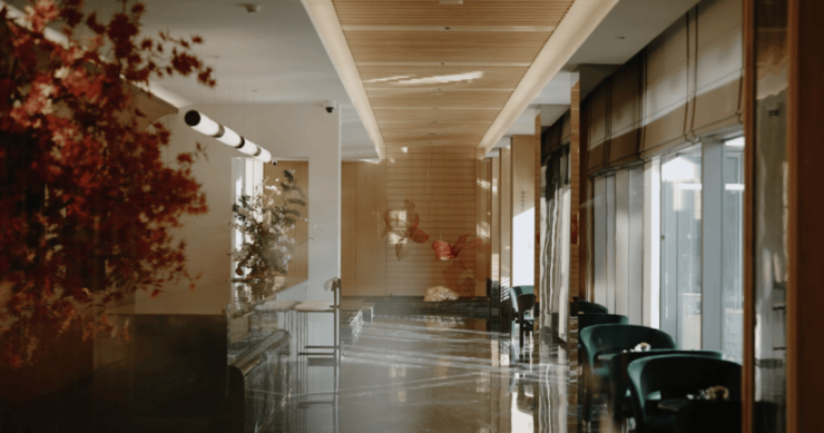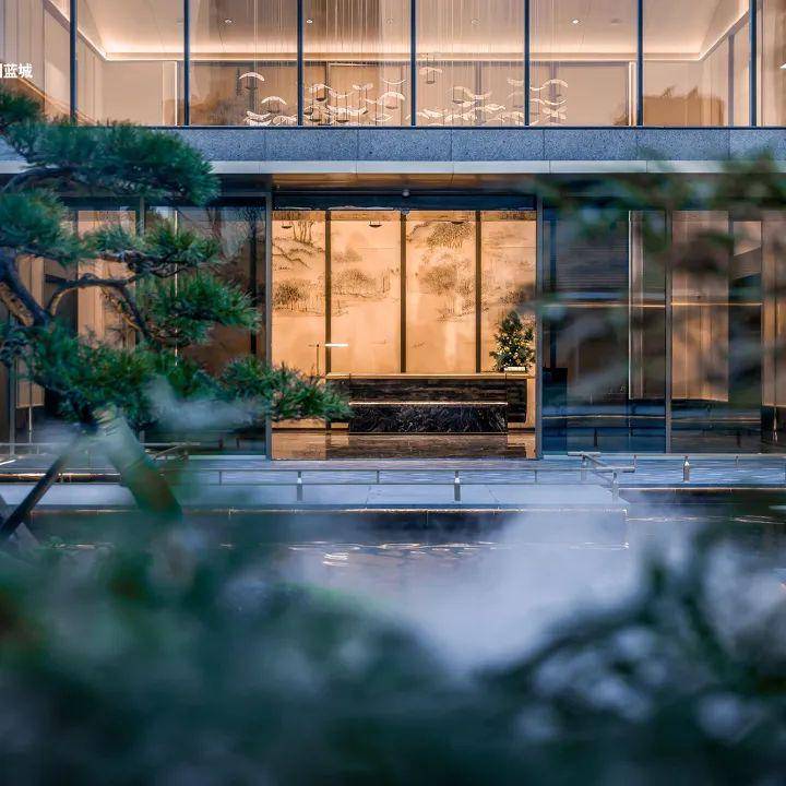 由goa大象设计执笔,建筑以宋代美学为灵感,以蓝眼睛石材的温润、超薄铝板的轻盈、三玻两腔玻璃的通透,勾勒出“悬浮感”与“水平感”交织的东方意境。当光影流转,立面即呈现极简东方的诗意艺术韵律。