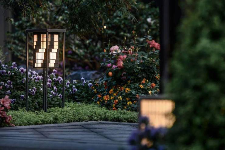 当城市归于沉寂,丹枫云庐的光影叙事仍未落幕。三玻两腔玻璃以轻薄通透,将月光引入室内,庭院中的定制灯盏如萤火点缀,与室内灯光艺术遥相呼应。