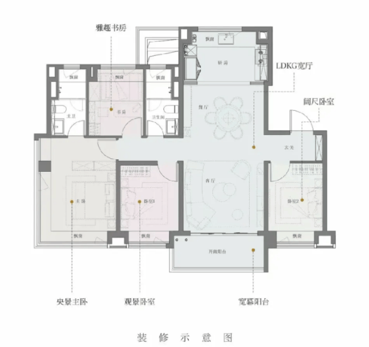 户型设计上,赠送高达7个飘窗,总赠送面积近15个㎡,已然一个豪华房间,并且设计优越,客餐厅LDKB一体贯穿谁几,空间奢华。