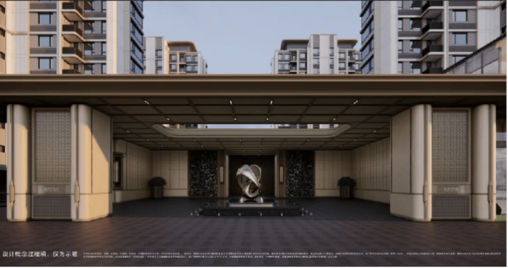 其次,小区的中央,将打造约180米长中轴景观带,贯穿整个社区,将鎏金门庭、下沉式会所、风雨连廊、中心水景都一路有机地串联到一起。