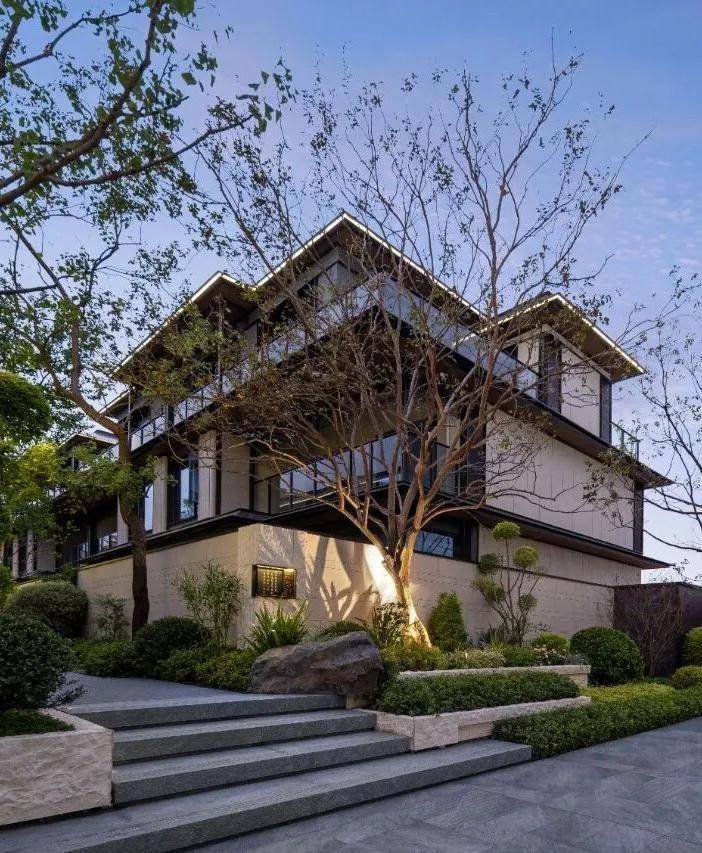 大区规划取意拙政园恢弘气度,匠心构筑“双街七巷”的当代坊巷格局,让苏式传统街巷的肌理与温情,在现代院墅中绵延生长。建筑立面也取意园林古建营造之法,提炼寻杖勾栏、望柱、挂落、披檐等元素融入细节之中,在这里,园林建筑不仅是风景,更是可“行、望、居、游”的精神场域,每一次漫步都是与文化的对话。
