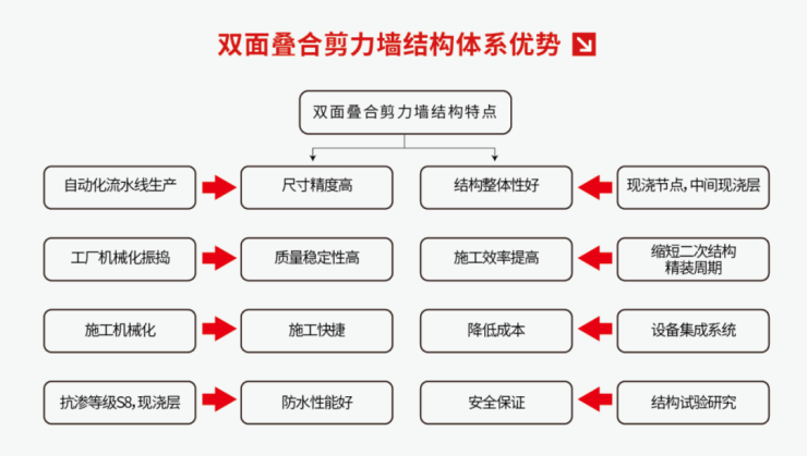 包括双面叠合剪力墙体系,同层排水系统,屋面防水系统,金刚砂耐磨地坪,使产品质量更有保障。
