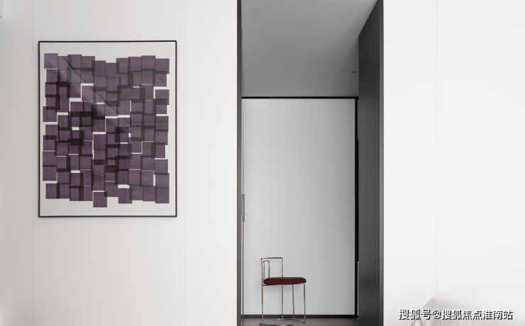 私密场域依旧保持静谧,黑白色基础上搭配了更多的色彩,例如深棕、浅紫等,艺术品的衬托深邃迷人,热络了家的氛围。
