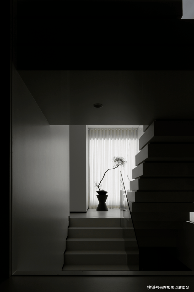 楼梯区完全被几何占据,自然光恰到好处的平衡,进一步呼应着空间的心境,衔接了生活和居所。