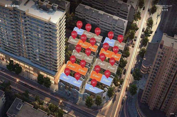 保利永兴里由保利发展开发,占地0.76万方,建面2万方,是一个低密度住宅区,容积率仅2.5,绿化率高达35%。由1栋17F小高层+10栋3F低密风貌别墅组成。 仅21席城央双拼风貌别墅;社区采用海派建筑风格,红砖清水+拱形门坊,复刻和平饭店酒店式门庭,五进归家礼序;并规划了约3500㎡的景观带。保利物业提供华尔道夫级酒店式管家服务,提供24小时管家服务。