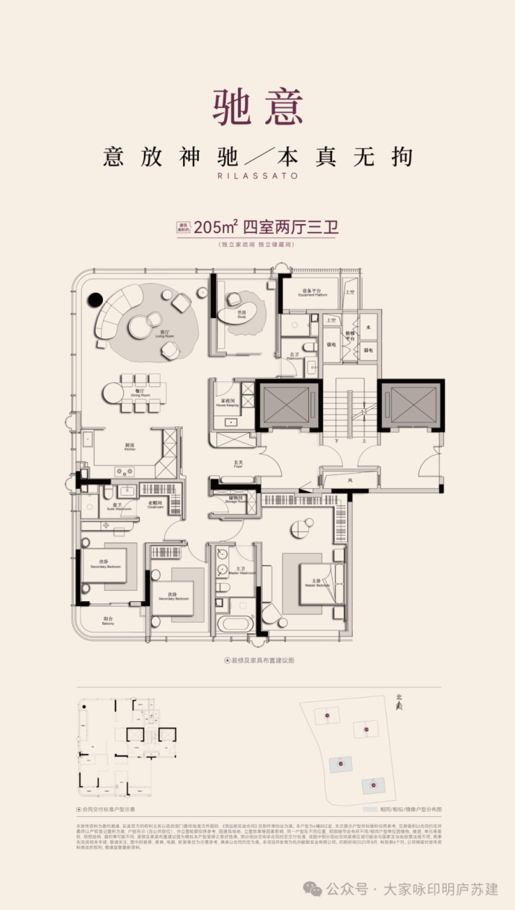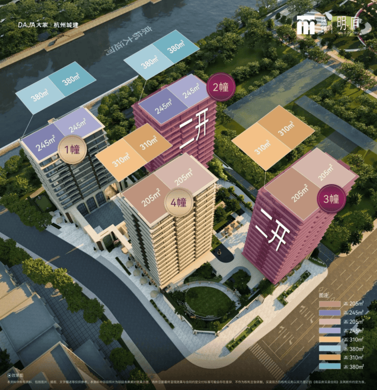 主力户型:小高层建筑面积约205㎡/245㎡;顶跃建筑面积约300m²/380㎡