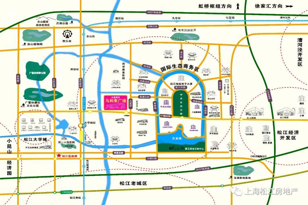 项目步行约 100 米有万达商圈,月星家居、麦德龙等大型商场;同时沿广富林路两侧拥有 约 60 万㎡五大集中商业配套,松江万达(约 23 万㎡),五龙商业广场(约 3.5 万㎡), 中展璞荟(约 5 万㎡),三迪曼哈顿(约 21 万㎡),上海富悦财富中心(约 12 万㎡ )