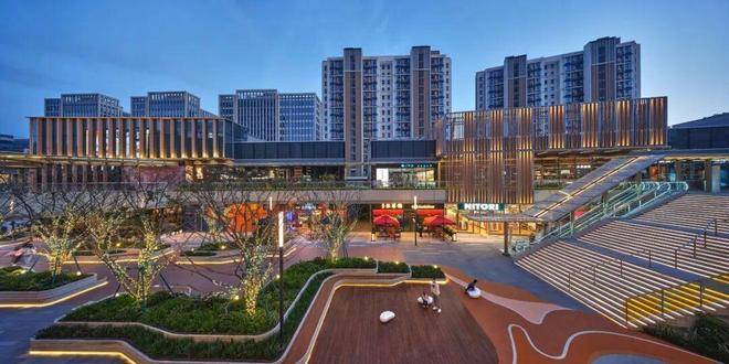 置于住宅底层的中央商业公园,以森感公园、九曲花街和花园大道三大主场景为核心,将十米以上(全区30%)高大的乔木、树屋商业及水景巧妙融合,营造自然与商业共生的都会花园街区。