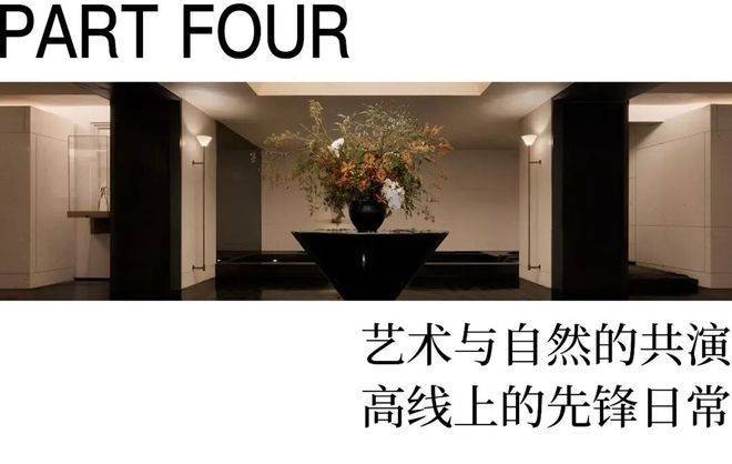 中兴傲舍进行了一场“垂直城市”的先锋实验。底盘之上是繁华商业,架空之上是私密花园。楼下欣赏国际艺术装置,转身上楼便能俯瞰万顷公园。