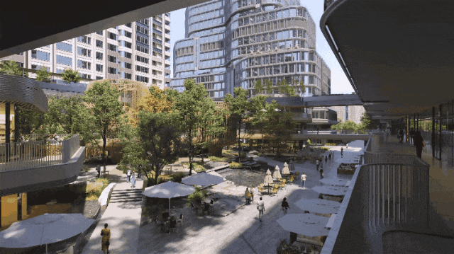 项目拥有三重公园体系,围绕“城市、商业、住宅”三大维度构建空间序列。