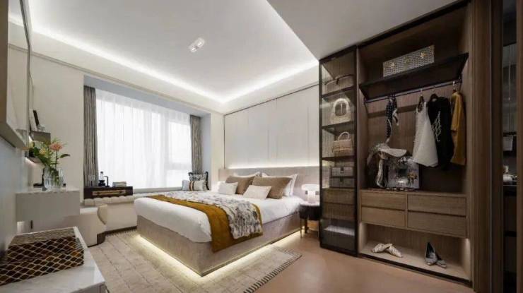 深安上居规划有12幢现代美学风格的建筑,玻璃幕墙搭配米白色和深灰色材质涂装,简约线条分割完善挺拔向上的平面美学。