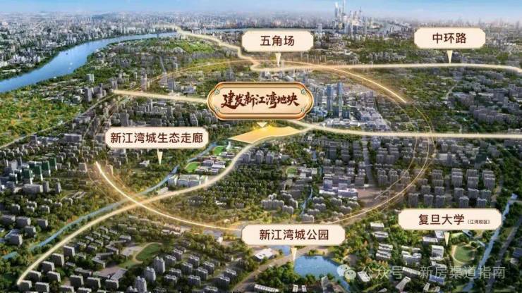 全新地块位于新江湾正芯,西临江湾城路,南接殷高东路,北贴在建的交大附中杨浦实验学校(在建);