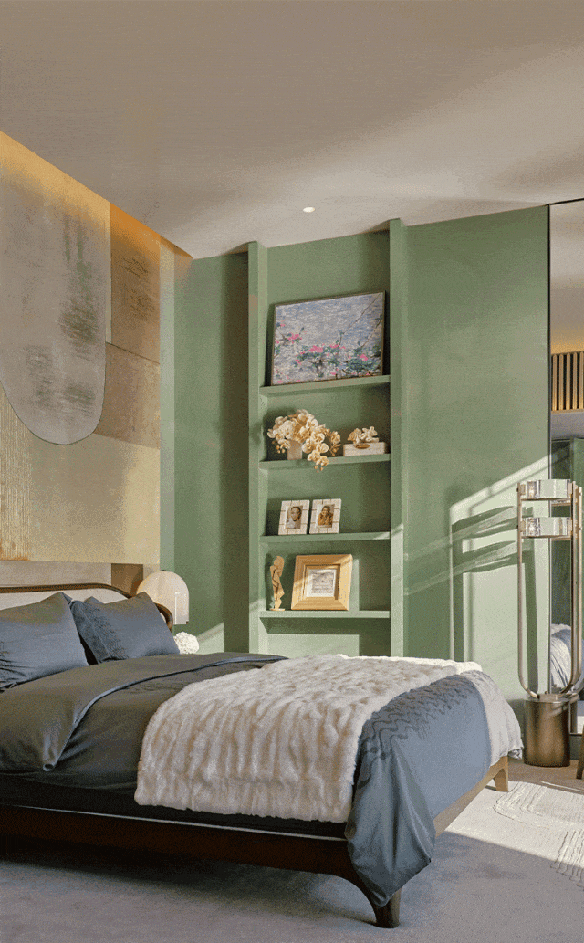 当Art Deco几何纹样与海派花砖暗纹悄然呼应,空间便完成了对新旧共生的又一诠释:所有物质都在克制表达中,回归生活本真的呼吸节奏。
