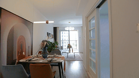从户型图就能看到三开间朝南,看了样板间的实景更觉得舒适。客厅朝南的好处不用多说,白天即使不开灯,整个空间也很通透。82㎡有这样的客厅,非常不错。