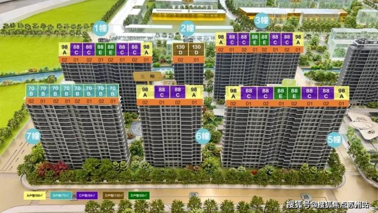 建面约98㎡3房2厅2卫户型,分别是边套、中间套,满足不同人群的居住需求。