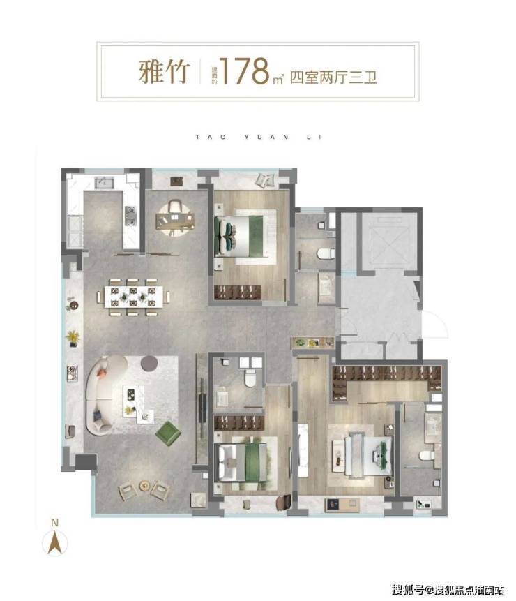 如果预算充足,还有2款终极改善户型,建筑面积约175-178㎡4房可供选择。