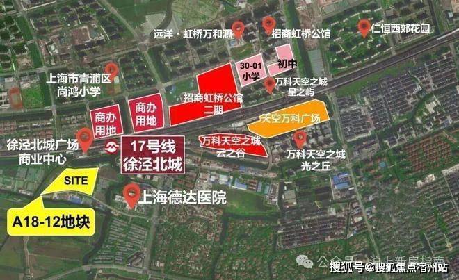 项目北侧紧邻17号线徐泾北城站(暂时需绕行河道),1站可达徐盈路天空万科广场,2站至蟠龙古镇商业区,3站直达国家会展中心,4站即达虹桥枢纽。