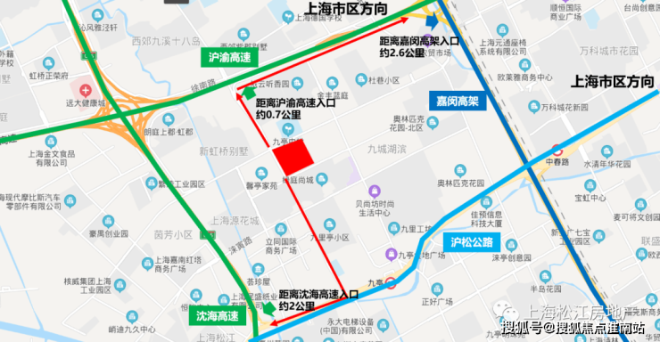 距轨交9号线九亭站直线距离约1.8公里