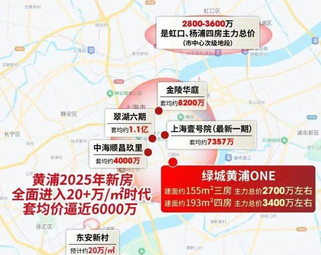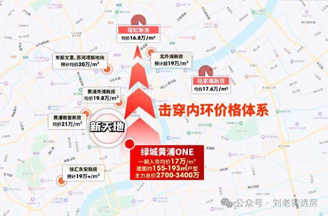 虹口在售新房单价已达16.8万/㎡,绿城地王预期更是19万+/㎡;
