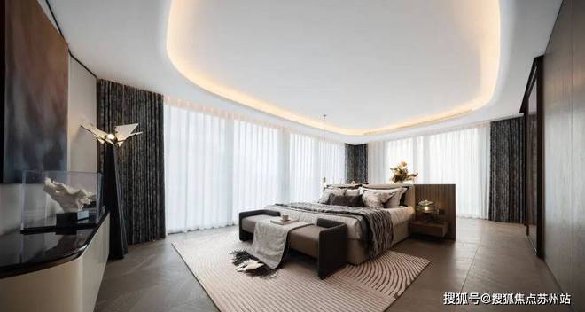 The presidential suite in the master bedroom on the second floor breaks the imagination with an extreme scale of approximately 60 square meters. The 270° panoramic balcony transforms the community garden landscape into a private background wall.