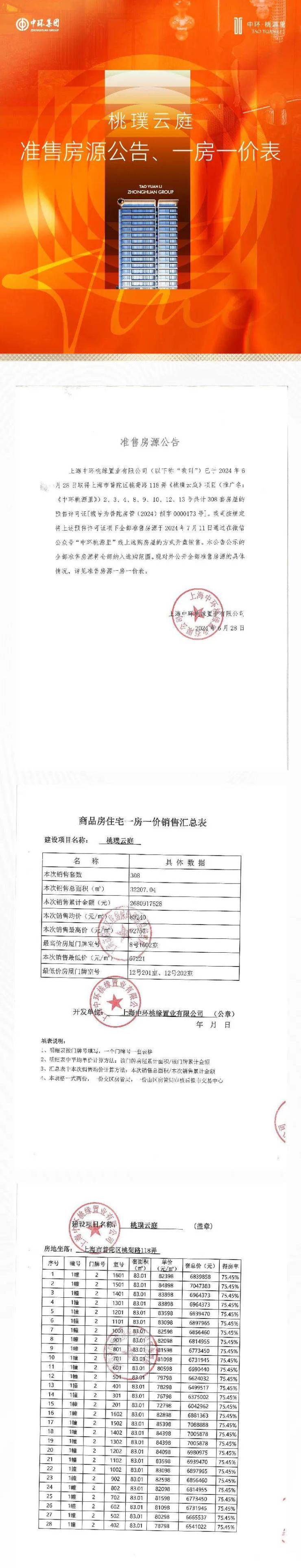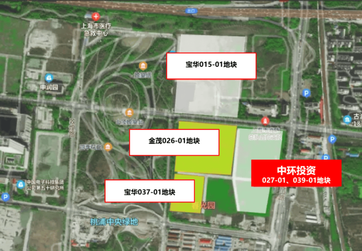 其中中环投资以总价约305000万元,竞得普陀区桃浦科技智慧城(W06-1401单元)027-01、039-01地块,地块出让面积31385.2㎡,容积率2.5,溢价率0%,成交楼板价38872元/㎡,房地联动价83000/㎡。