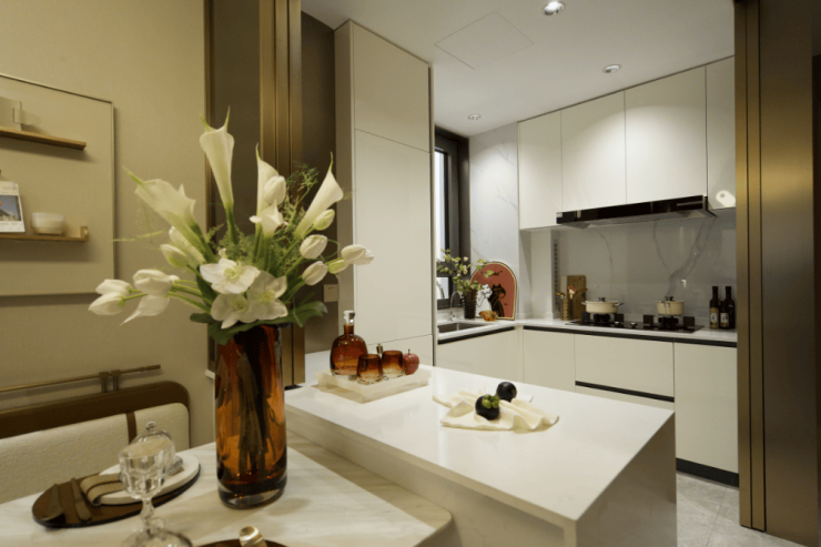 厨房是开放式的(也可封闭),不仅拉大了视觉尺度,更让你在做羹汤时,能与客厅里的家人随时互动,打破了原本厨房的“孤独感”,赋予更多情感交流。