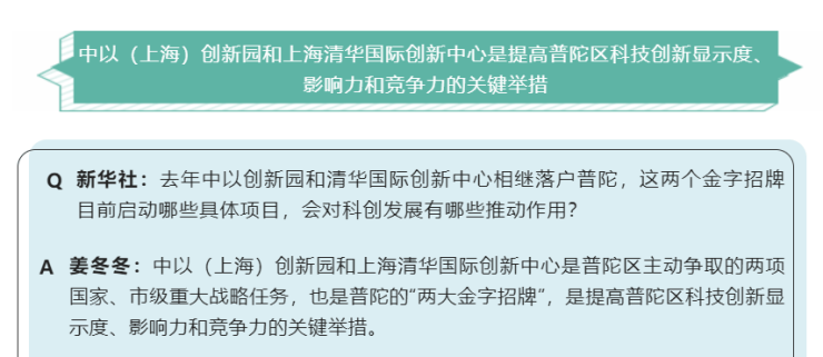 桃浦智创城的科研设计用地约76万方。普陀区区长姜冬冬曾对中以创新园和清华国际创新中心落户普陀发表看法。