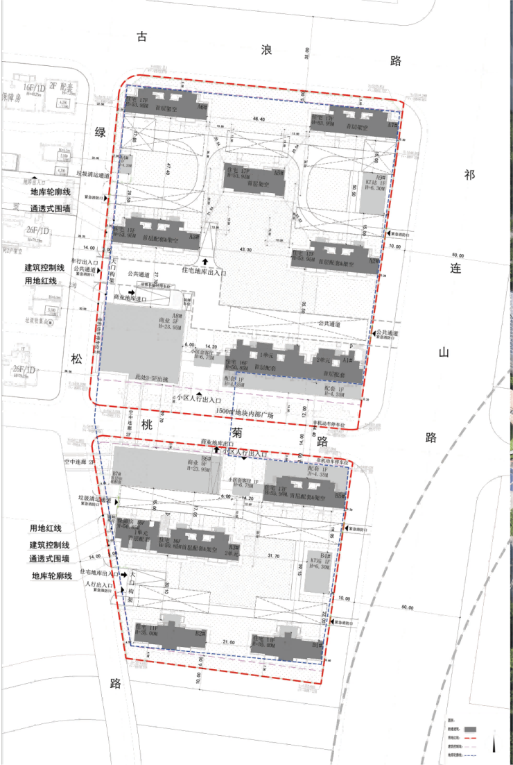 项目地块东至祁连山路,西至规划绿松路,南至常和路,北至古浪路。拟建10栋11-17层住宅,另有部分商用及配套用房。