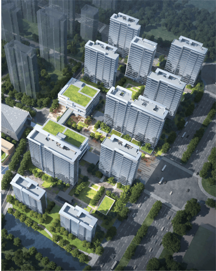 在桃浦智创城板块,中环集团把主观能动性发挥到了极致,其打造的中环桃源里成为融近零能耗标准 (10栋住宅) 、智能制造(1栋住宅)、光储直柔 (1栋商业) 为一体的示范低碳项目。